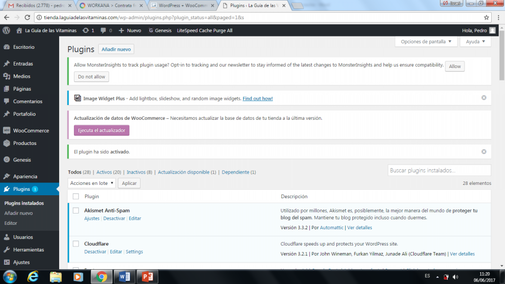 - En la nueva ventana te aparecerá la opción de “Activar este plugin”. Haz clic sobre este botón y el sistema te remitirá a la sección de plugins.